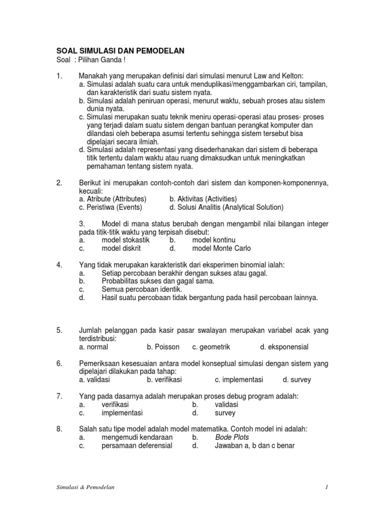 Program studi teknik industri fakultas teknik universitas islam bandung ujian akhir semester ganjil tahun akademik. Contoh sitem kendali/sistem kontrol dalam keseharian kita adalah stang motor yang digunakan untuk mengendalikan arah dari melajunya kendaraan motor. Contoh kasus pemodelan sistem dan simulasi selamat datang, kali ini saya akan berbagi ilmu mengenai contoh kasus pada materi pemodelan sistem dan simulasi. Contoh soal pemodelan sistem wl1p5qejr2lj. Soal uas pemodelan dan simulasi gunadarma.