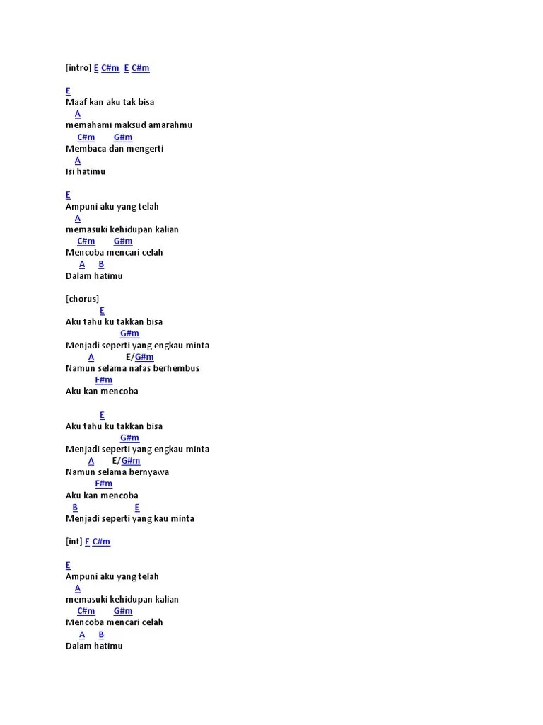 G engkau yang sedang patah hati C d dan tak terpungkiri juga bagi. Dm g menangislah dan jangan ragu ungkapkan. Chorus ] f c f g c. Engkau yang sedang patah hati menangislah dan. C g c d g c engkau yang am sedang patah hati f . F c f g c. Engkau yang sedang patah hati. Lirik lagu 'pedih' by last child, engkau yang sedang patah hati. Chord kunci gitar last child pedih dari nada dasar c. Engkau yang sedang patah hati. Menangislah dan jangan ragu ungkapkan. Engkau yang sedang patah hati hanya diri sendiri yang tak mungkin orang lain akan mengerti di sini ku .