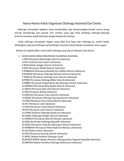 Apakah nama wadah untuk olahraga renang indonesia? Perubahan ini timbul dengan pertimbangan bahwa terdapatnya dua induk organisasi olahraga yang mempunyai singkatan sama pbsi. Sama halnya dengan cabang olahraga lainnya, renang juga memiliki induk organisasi dunia. Guru renang, dan guru olahraga lainnya. Induk olahraga renang dunia adalah fina.
