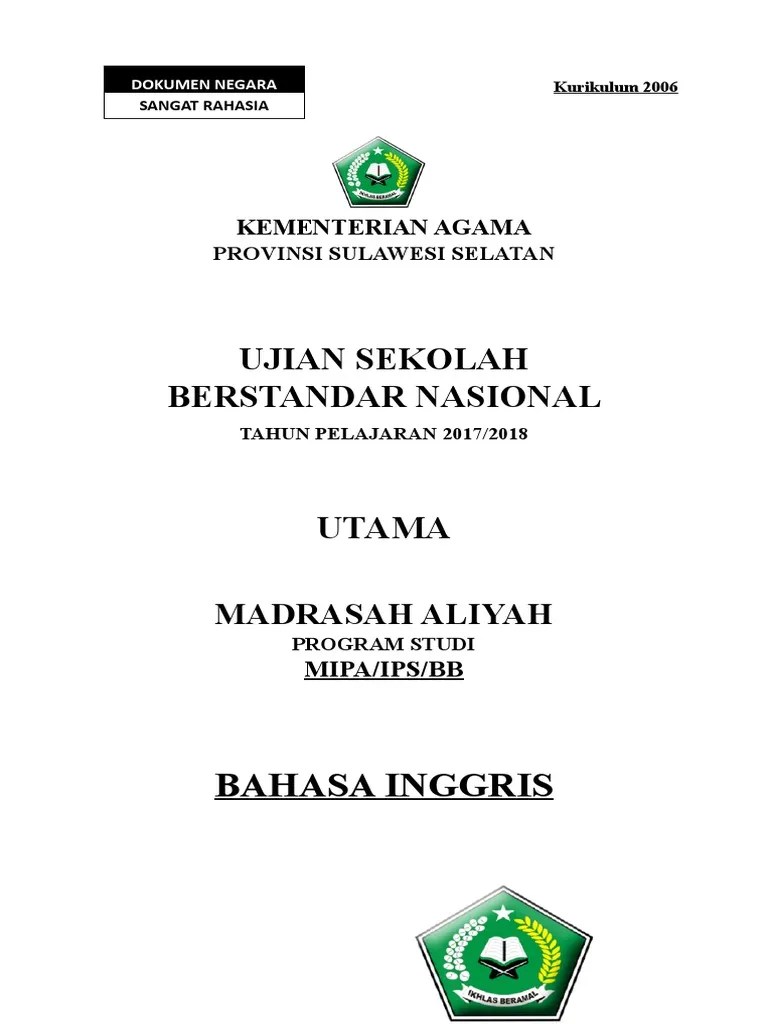Latihan soal ujian sekolah (us) bahasa inggris sma tahun. Berikut contoh latihan online soal ujian sekolah (us/usbn) bahasa inggris smp kurikulum 2006 (ktsp) tahun 2021. Kisi kisi usbn 2017 semua mapel kurikulum 2006 dan 2013. Latihan soal ujian sekolah bahasa inggris kurikulum 2013 sma ipa ips. Perilaku yang sesuai sebagai wujud iman kepada kitab suci al quran berdasarkan wacana tersebut adalah ….